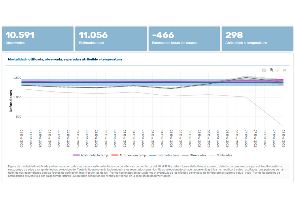 La información histórica de MoMo refleja que el invierno, y enero en particular, concentra una parte importante de la mortalidad atribuible a bajas temperaturas. A diferencia del calor, cuyo impacto suele ser abrupto, el frío actúa de manera más silenciosa pero prolongada.