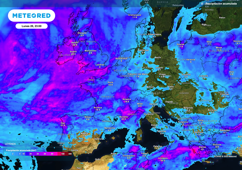 El frente frío de mañana unirá A Coruña y Edimburgo: 1500 km de lluvias y tormentas