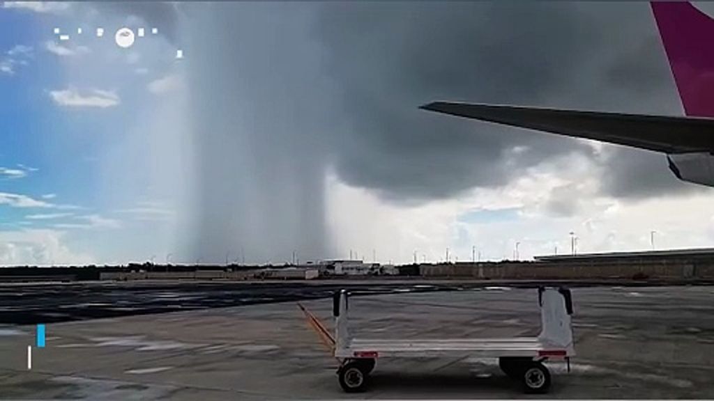 Vídeo: un espectacular "microburst" o microrráfaga sorprende a turistas y trabajadores del aeropuerto de Cancún, México
