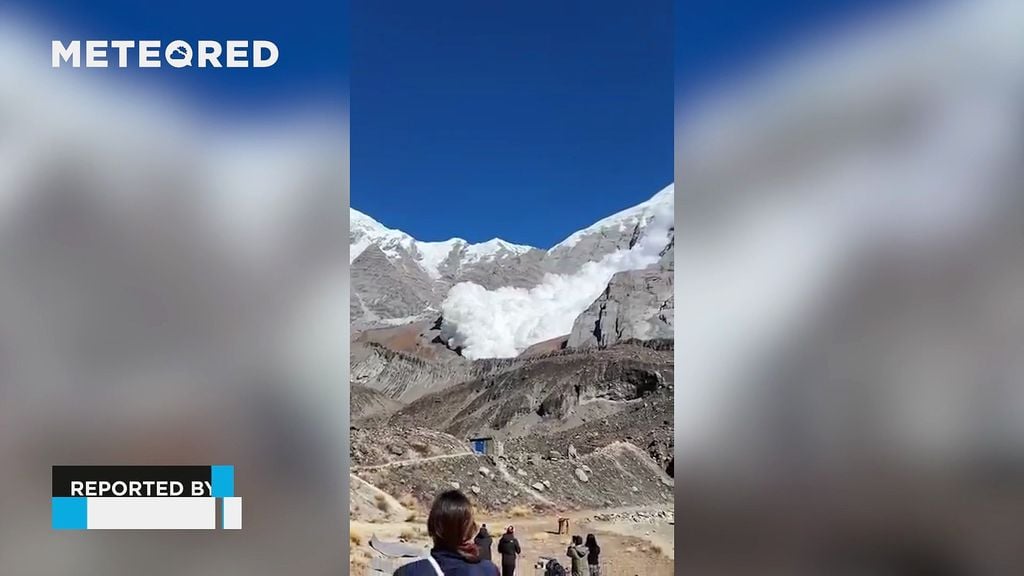 Las imágenes muestran cómo una enorme masa de nieve, hielo y desprendimientos rocosos se desliza velozmente por una de sus laderas situadas al norte, provocando una gigantesca nube blanca que emergió como un muro contra el paisaje.