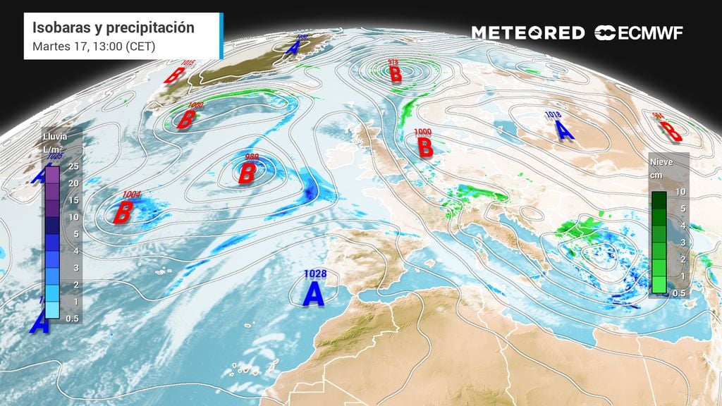 En este contexto, el tercio norte peninsular, y en especial la vertiente cantábrica, continuará bajo la influencia de frentes y aire húmedo. El Cantábrico más oriental será uno de los puntos más afectados, con precipitaciones frecuentes y persistentes que mantendrán un ambiente plenamente invernal. Las miradas se centran en el País Vasco, donde los acumulados serán significativos.