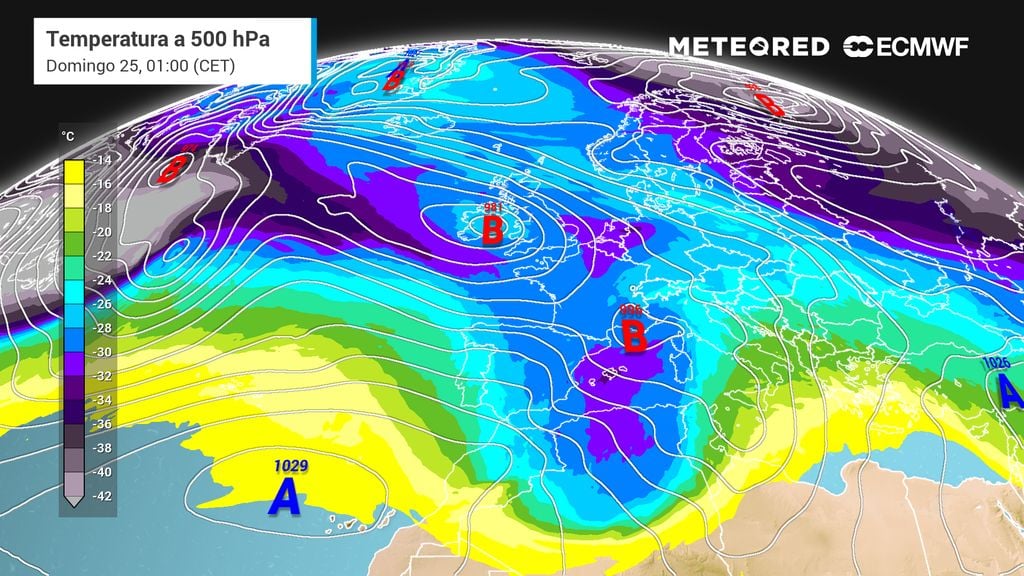 En Galicia podrá nevar a partir de tan solo 500 metros. También puede hacerlo en todos los sistemas montañosos en la meseta norte incluso en alguna comarca de la meseta sur. El cielo estará nuboso con posibilidad de lluvias débiles en el norte de Canarias.