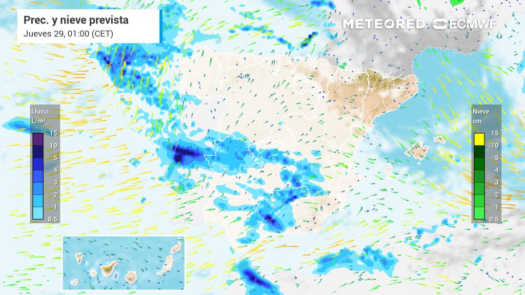 Los 80 l/m² podrían alcanzarse o superarse de forma local en zonas de sierra del interior, con especial atención a la Serranía de Ronda y entorno de Grazalema, así como en puntos del interior de Málaga y del entorno del Campo de Gibraltar, donde el efecto orográfico intensificará las precipitaciones.
