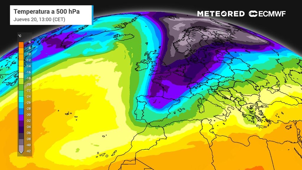 A partir del miércoles 19, el chorro polar estará muy ondulado en el entorno euroatlántico. Una dorsal anticiclónica ascenderá de sur a norte hacia Islandia, mientras que sobre el continente europeo se descolgará una gran vaguada, y bajo la misma se desarrollarán varias borrascas. Entre las altas y las bajas presiones impulsarán un flujo de norte que traerá una masa de aire ártica marítima que afectará a buena parte de Europa, incluyendo España.