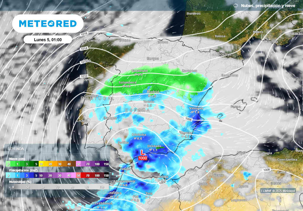 A partir del sábado la borrasca Francis se aproximará al sur peninsular, impulsando aire templado y húmedo, mientras que una irrupción polar o ártica podría llegar desde el norte, produciéndose un choque de masas de aire sobre la Península, una situación extremadamente compleja.