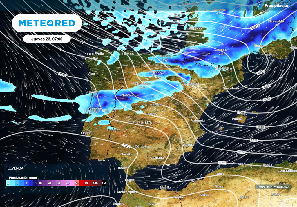 Como ya explicamos en Meteored, el chorro polar se ha intensificado en esta primera parte de la semana, con un amplio centro de bajas presiones entre las islas británicas y Escandinavia, una borrasca fría aislada al oeste de Azores y con las altas presiones retiradas al sur. Todo ello favorece la llegada de un río de humedad procedente del Atlántico, y que reactivará las lluvias en varias provincias.