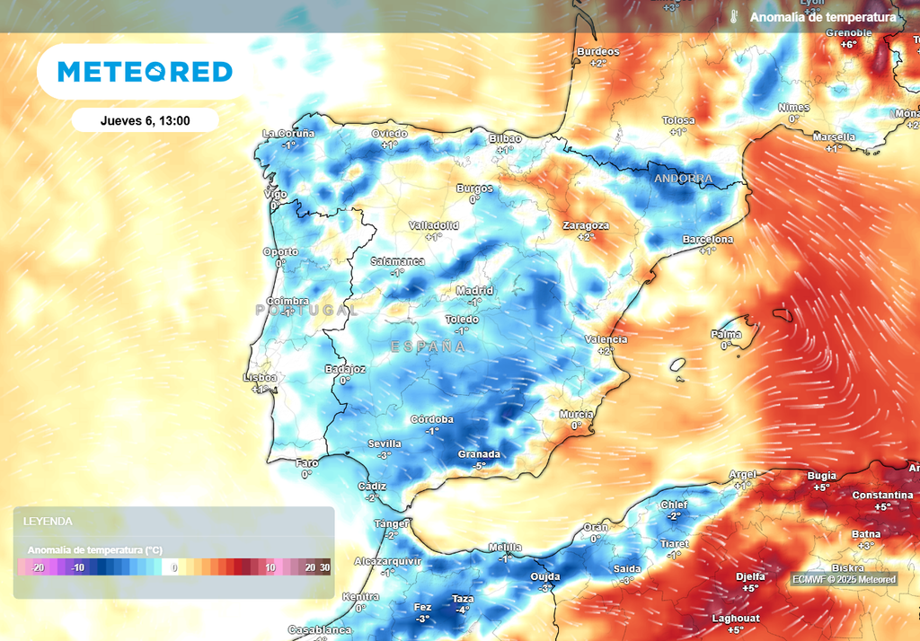 En cuanto a las temperaturas, tenemos por delante una montaña rusa térmica esta semana. Tras las noches frías de hoy y mañana, el miércoles subirán de forma acusada en la mayor parte del país. Desde el jueves una masa de aire polar traerá un bajón térmico casi generalizado, con heladas en diversas capitales. En Canarias seguirá el ambiente anormalmente cálido para la época.