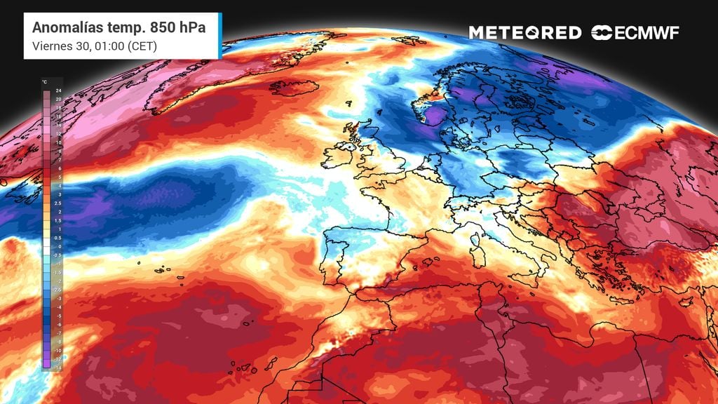 Como consecuencia, España quedará bajo la influencia de una advección de aire frío en capas medias de la atmósfera, un ingrediente clave no solo para el desplome térmico, sino también para la aparición de nevadas.