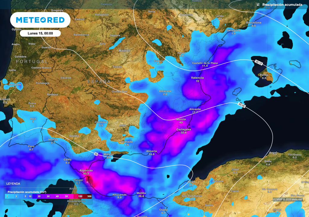 Mañana la situación más complicada se trasladará al Mediterráneo, con lluvias intensas en el sureste, levante y área del Estrecho. Las comunidades más afectadas serán la Región de Murcia, Comunidad Valenciana, Castilla La Mancha y zonas de Andalucía.