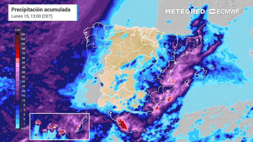Aunque el mar ya no está tan caliente como en otoño, la combinación del aire frío en niveles medios, aportado por la dana, y el flujo de levante serán suficientes para provocar lluvias fuertes y persistentes en algunas comunidades. La AEMET ha activado avisos por lluvias intensas en cinco comunidades autónomas mañana domingo, cuatro de ellos de riesgo importante (color naranja).