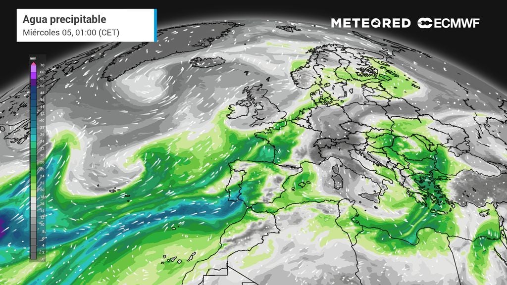 En lo que queda de semana varios frentes dejarán precipitaciones cuantiosas en varias zonas de España, y que se verán alimentadas por un río de humedad. Además, a partir del viernes bajarán las temperaturas.