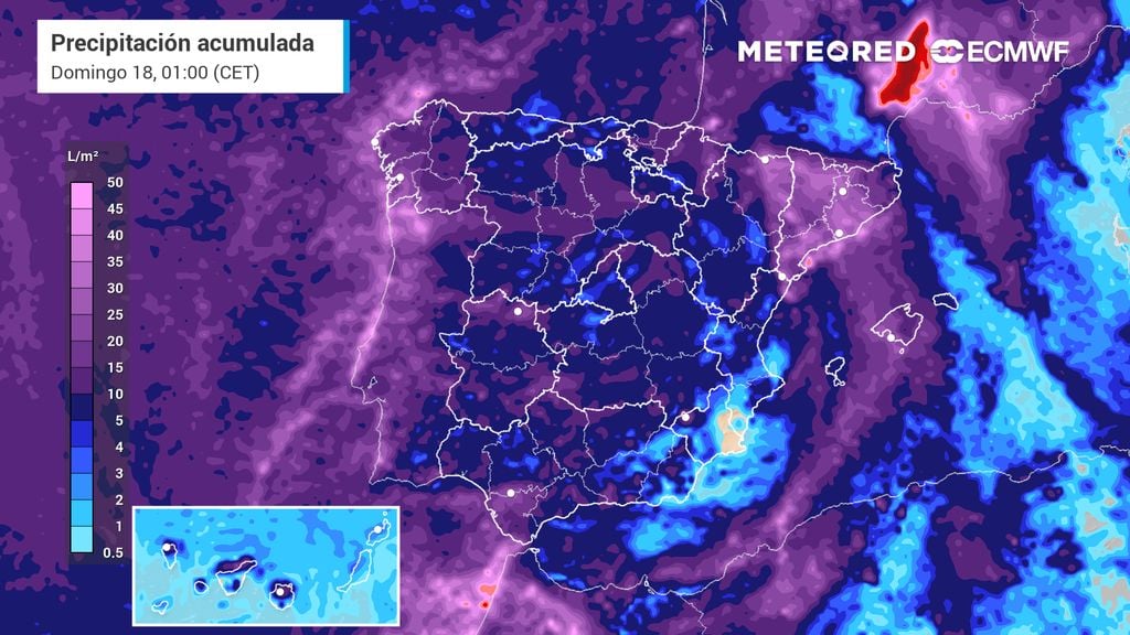 Con este escenario, el episodio dejará acumulados significativos en amplias zonas, especialmente en las provincias de Barcelona y Girona, donde las cantidades de lluvia podrán ser muy destacables al final del fin de semana. Según el modelo europeo, se esperan más de 70 l/m2 en el litoral barcelonés, así como en el este de Lleida. En la costa Brava, fácilmente se acumularán más de 60 l/m2. El foco de atención se sitúa en el riesgo de acumulaciones importantes en poco tiempo.