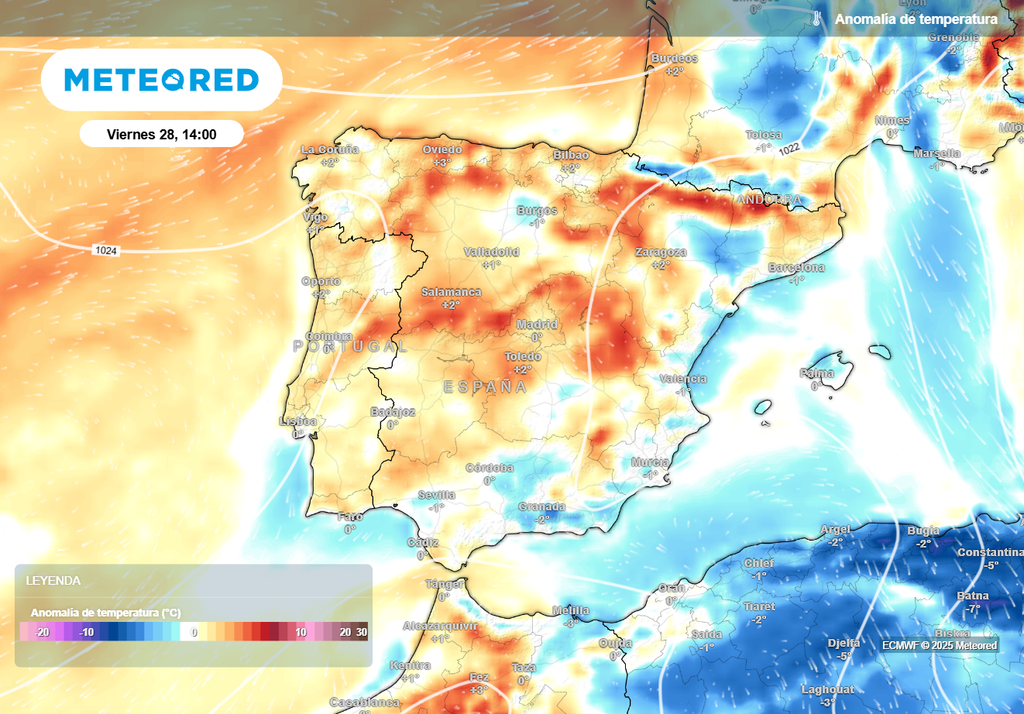 Las temperaturas subirán en la mitad oriental peninsular, sobre todo las mínimas. En cuanto al viento, habrá intervalos de tramontana fuerte en el norte de Baleares, aunque tenderá a amainar y a rolar a poniente. Predominarán los vientos del sur en Galicia y el Cantábrico; de levante en el Estrecho y alisios en Canarias.