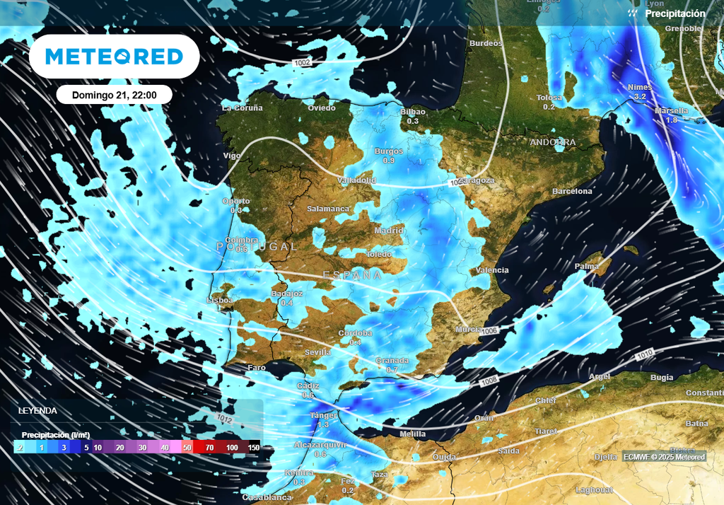 Durante el fin de semana llegarán varios frentes asociados a una baja situada sobre las islas británicas, y que volverán a dejar precipitaciones en amplias zonas del país. Entrarán por el noroeste peninsular y dará lugar a un fin de semana marcado por la inestabilidad, con lluvias que afectarán primero a Galicia y al Cantábrico y que se irán extendiendo al interior, al norte y a zonas del centro, siendo más persistentes en el noroeste y en áreas de montaña.