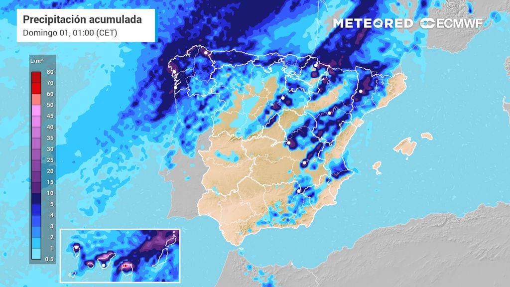 Por otra parte, durante la primera parte de mañana seguirá el ambiente inestable en Canarias debido a la presencia de la dana. También podría verse el elemento blanco en las cumbres más altas de Tenerife y La Palma. Con el transcurso de la jornada, las precipitaciones irán remitiendo, donde el fuerte vientos del este-noreste pasaría a ser el protagonista.