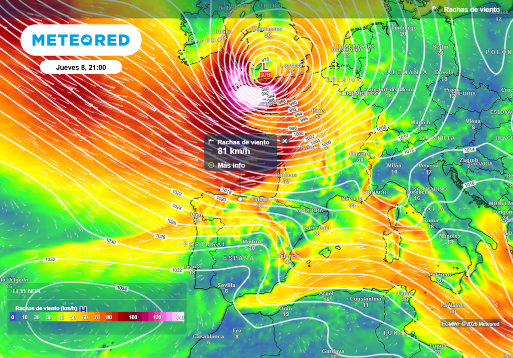 Entre mañana y viernes la borrasca Goretti experimentará un proceso de ciclogénesis explosiva bajo el chorro polar al sur de las islas británicas, dejando un importante temporal en Europa occidental y afectando sobre todo a Francia. El impacto en España será menor, pero también dejará un temporal marítimo duro en el norte, con rachas muy fuertes de viento y precipitaciones en varias comunidades.