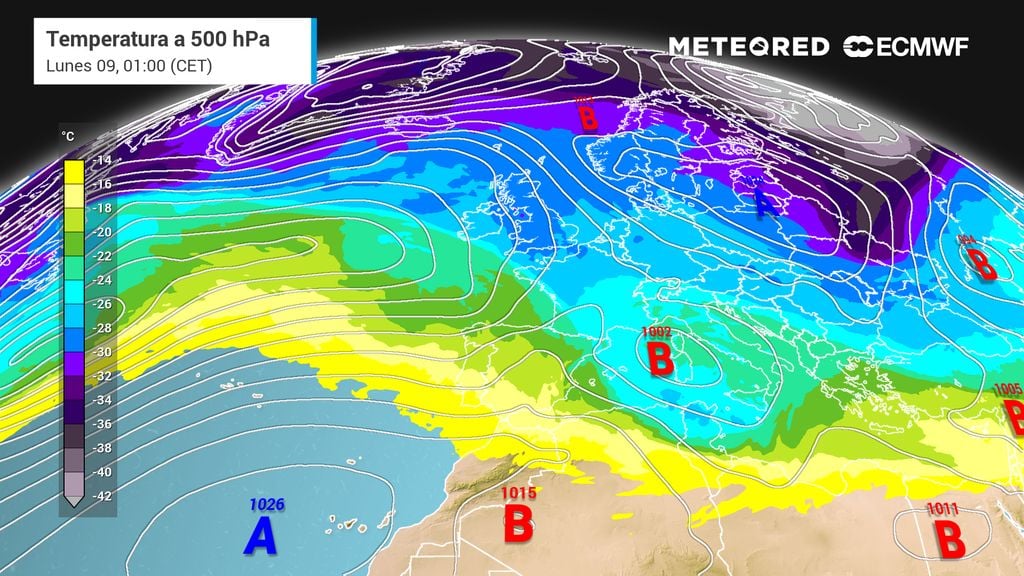 Mientras el vórtice polar continúe debilitado y el chorro siga transitando por latitudes tan bajas, estas borrascas continuarán formándose muy al sur y arrastrando más aire subtropical hacia el sur de Europa, agravando la situación.