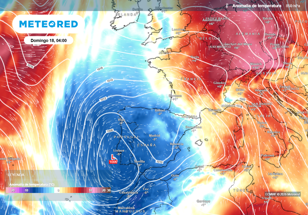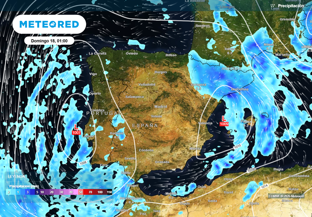 - Sábado y domingo: formación de bajas presiones en el entorno de la Península. Bajo la influencia del aire frío en niveles medios de la troposfera, las bajas presiones concentrarán las lluvias en aquellas zonas donde incidan los flujos de viento marítimo. Por ahora, el modelo europeo apuesta por el Golfo de Cádiz y Cataluña, con una posible nevada muy significativa en el Pirineo.