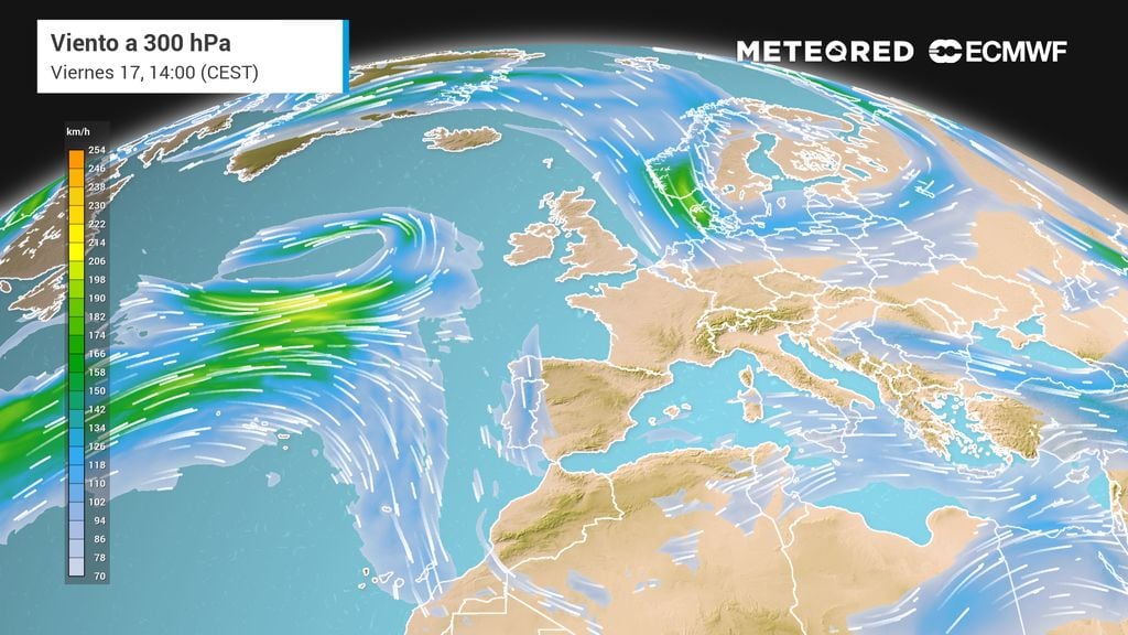 Cuando la corriente en chorro se intensifica, apenas presenta ondulaciones y se produce una intensa circulación de borrascas atlánticas dirigidas precisamente por el chorro polar. Existe aún bastante incertidumbre, pero el escenario más probable a día de hoy muestra que España quedará partida en dos, ya que la mitad norte estará bajo la influencia de estas borrascas atlánticas y sus frentes, mientras que por el sur y Canarias asomará la dorsal subtropical.