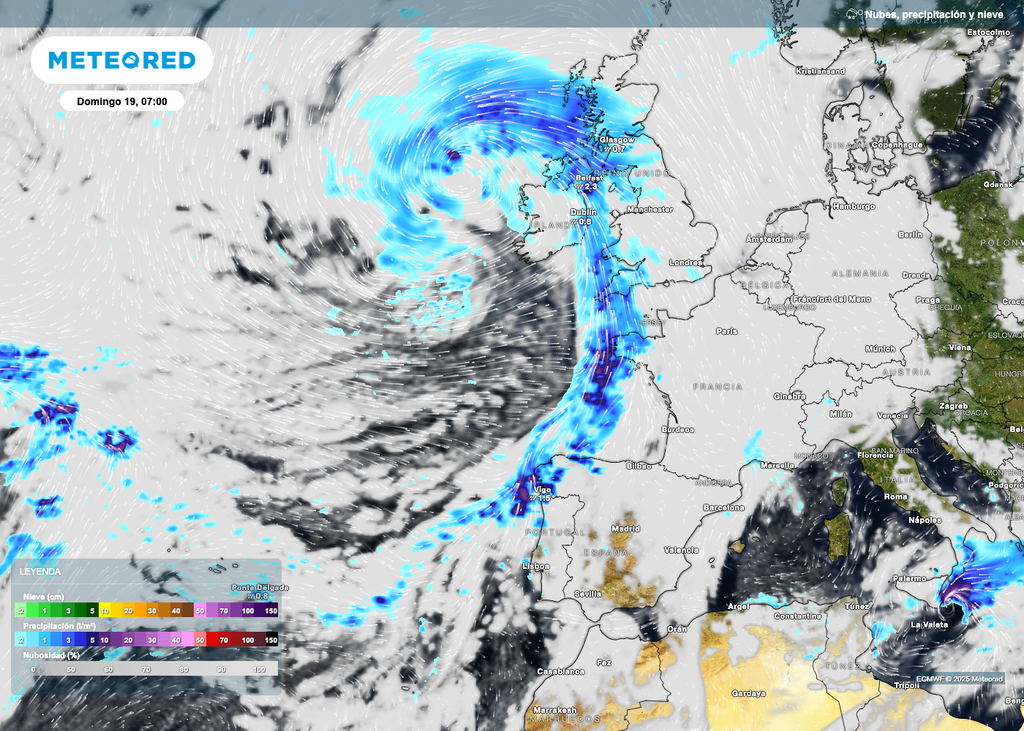 En la jornada del domingo el anunciado frente irá produciendo lluvias en gran parte del noreste peninsular, pudiendo ser fuertes en la comunidad gallega y moderados en Asturias, las provincias del norte de Castilla y León, Cantabria y la Cordillera Ibérica. A lo largo del día se podrán extender hacía el resto de la comunidad castellanoleonesa y el centro peninsular.