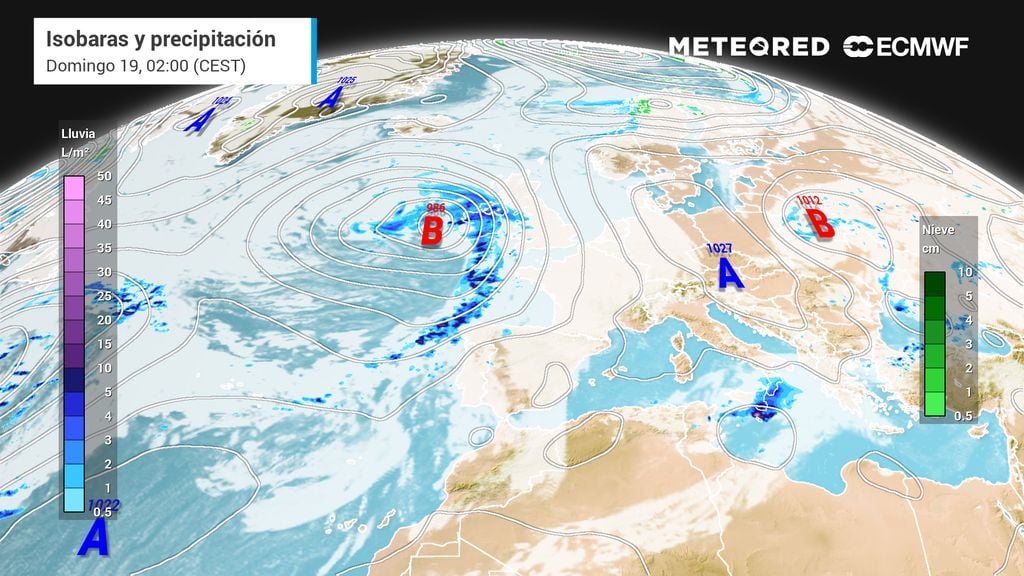 El bloqueo británico cederá a partir del viernes y abrirá la puerta a la llegada de los frentes atlánticos. El primero llegará el domingo y dejará precipitaciones más cuantiosas en el noroeste.