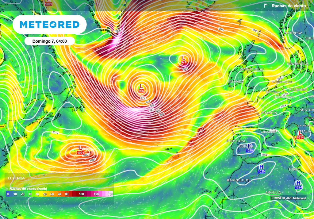 En los siguientes días el Atlántico Norte estará especialmente activo, formándose borrascas que se profundizarán rápidamente y afectando a toda la zona atlántica de Europa, incluyendo España: aquí sus impactos.