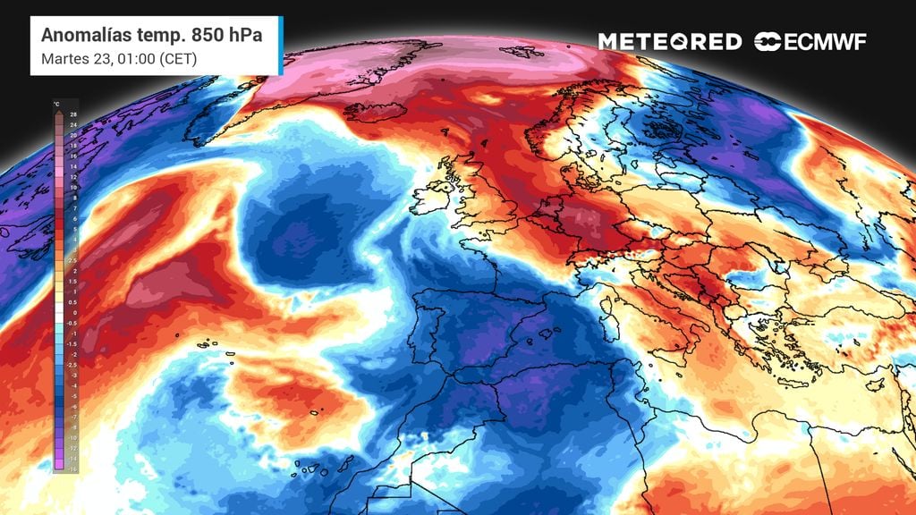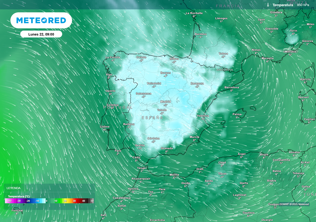 La masa de aire polar que irrumpirá en la Península, dejando un ambiente plenamente invernal y con temperaturas que descenderán hasta valores negativos, con registros inferiores a los -10 ºC en zonas de montaña.