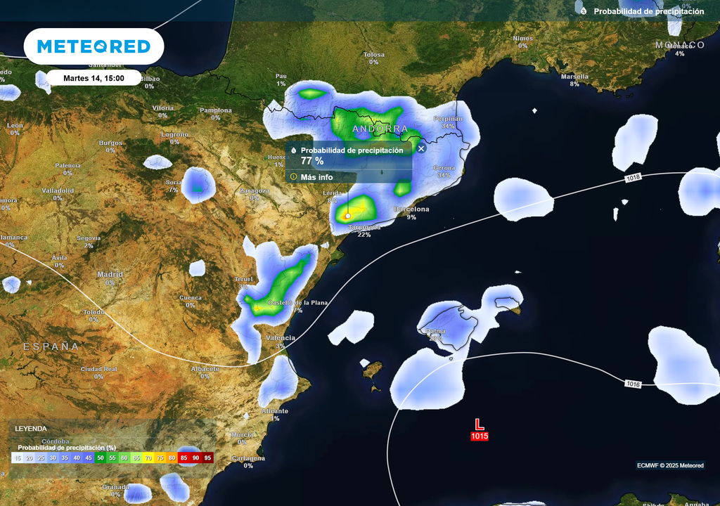 El bloqueo persistirá en las próximas horas, con lluvias localmente muy intensas en el Mediterráneo, pero ya no tanto como en las jornadas anteriores. En el oeste el calor apretará en las horas centrales.