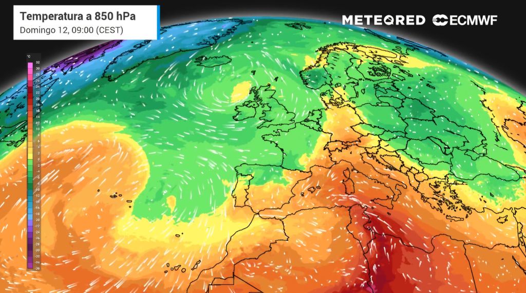 Tras dicha perturbación frontal entrará una masa de aire frío y húmedo procedente de latitudes altas, lo que traerá consigo un drástico descenso de las temperaturas, que será extraordinario en el noroeste. Solo en algunas comarcas mediterráneas se superarán ligeramente los 25ºC. Los vientos dominantes serán de componente norte y serán fuertes en la cuenca del Ebro. En las regiones del sur serán de poniente, y en Canarias del norte moderados.