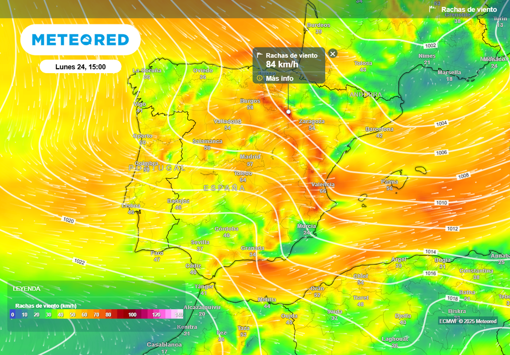 El viento soplará con fuerza y dejará rachas superiores a 80 km/h. En el norte de Burgos ya están activos los avisos y así será hasta el mediodía. Misma situación para la Ibérica de Soria, riojana y zaragozana.