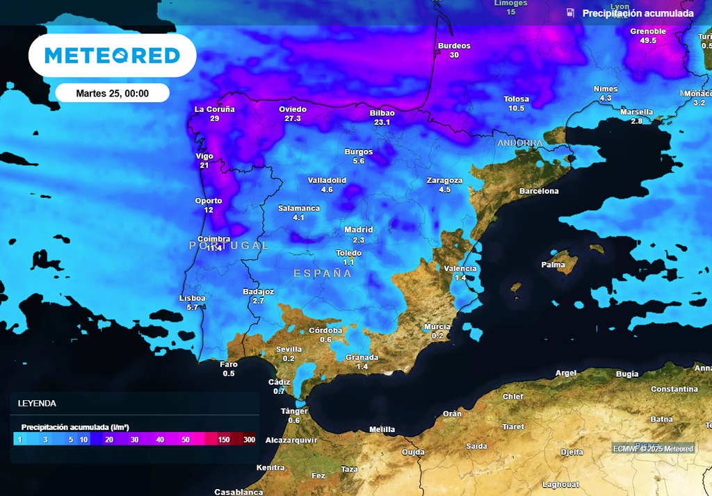 El avance del sistema frontal ya ha dejado esta noche precipitaciones en buena parte del tercio norte peninsular. A medida que avance el día, se irán extendiendo hacia el sur, dejando un ambiente lluvioso en bastantes comunidades.