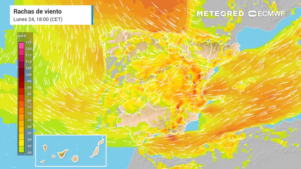El extremo más oriental de Andalucía y el noroeste de la Región de Murcia esperan a partir del mediodía vientos fuertes y que puntualmente las veletas se moverán a más de 70 km/h. Asimismo en Alcaraz y Segura en la provincia de Albacete, donde incluso podrían superar los 80 km/h.
