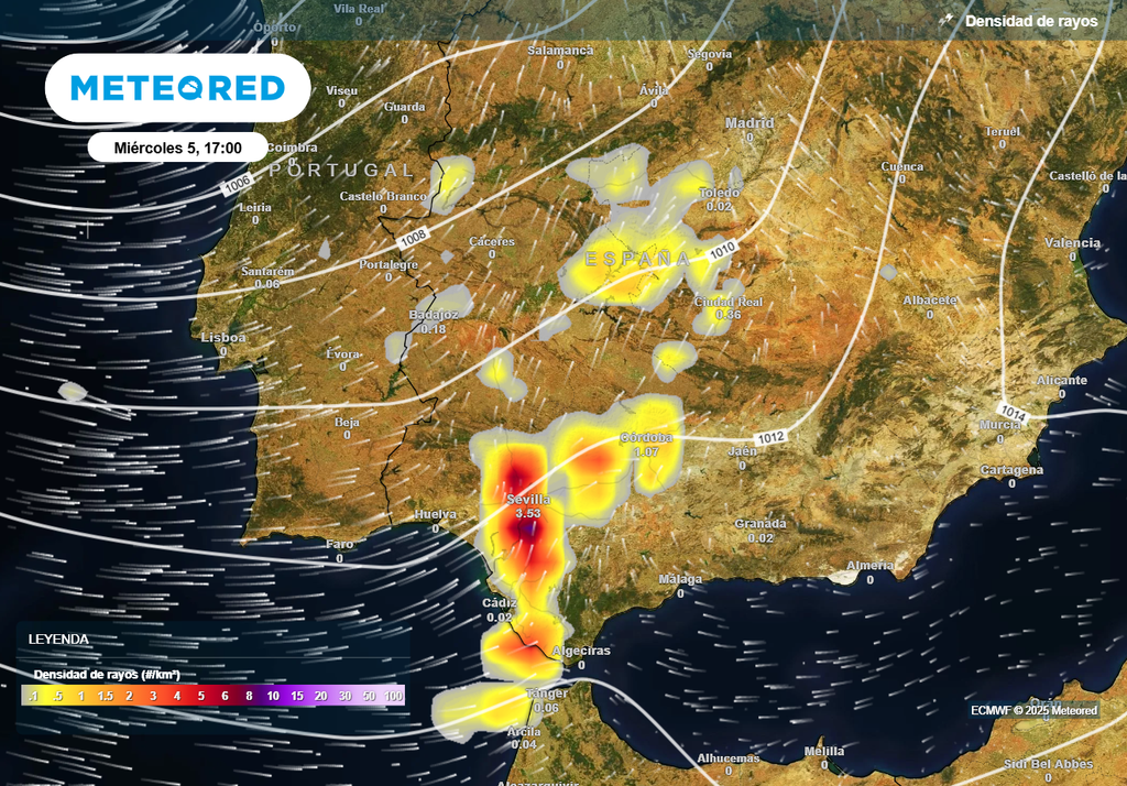 En la provincia de Córdoba, demarcaciones de Antequera y Axarquía (Málaga), Costa Tropical granadina y en Ceuta podrían caer más de 20 l/m². Cabe destacar que en la mitad occidental peninsular existe la posibilidad de caída de granizo. La vaguada en altura será la que dispare el desarrollo de tormentas embebidas en el frente, con posibles núcleos convectivos prefrontales.