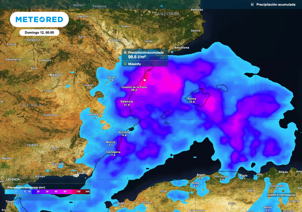 Más de 100 l/m2 en amplias zonas de la Comunidad Valenciana