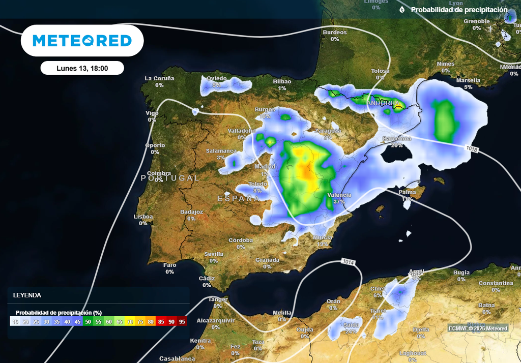 Una pequeña bolsa de aire frío en altura cruzará la Península de oeste a este, dejando a su paso lluvias y tormentas fuertes, que se intensificarán a orillas del Mediterráneo.