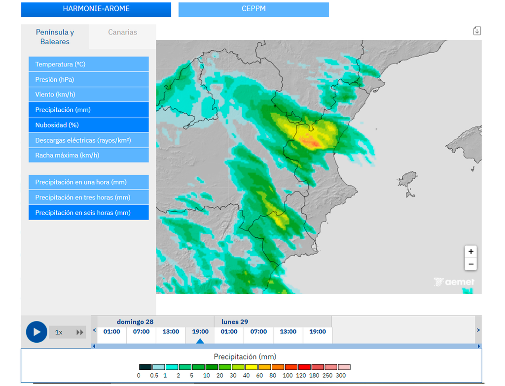 Hay escenarios que no descartan acumulados de más de 100 l/m² en puntos de la provincia de Valencia y comarcas limítrofes, por lo que la AEMET ha activado el aviso naranja. Al igual que sucedió ayer en Málaga, no podemos descartar que se pueda elevar el nivel del aviso dependiendo de la evolución del episodio. Algunas células podrían presentar un alto grado de organización, con posibilidad de granizo y de que se descuelgue alguna manga marina en la costa.