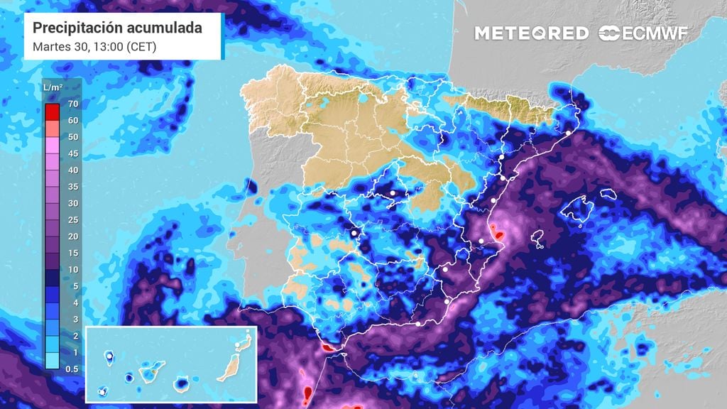 En puntos de la Comunidad Valenciana podrían caer más de 100 l/m²