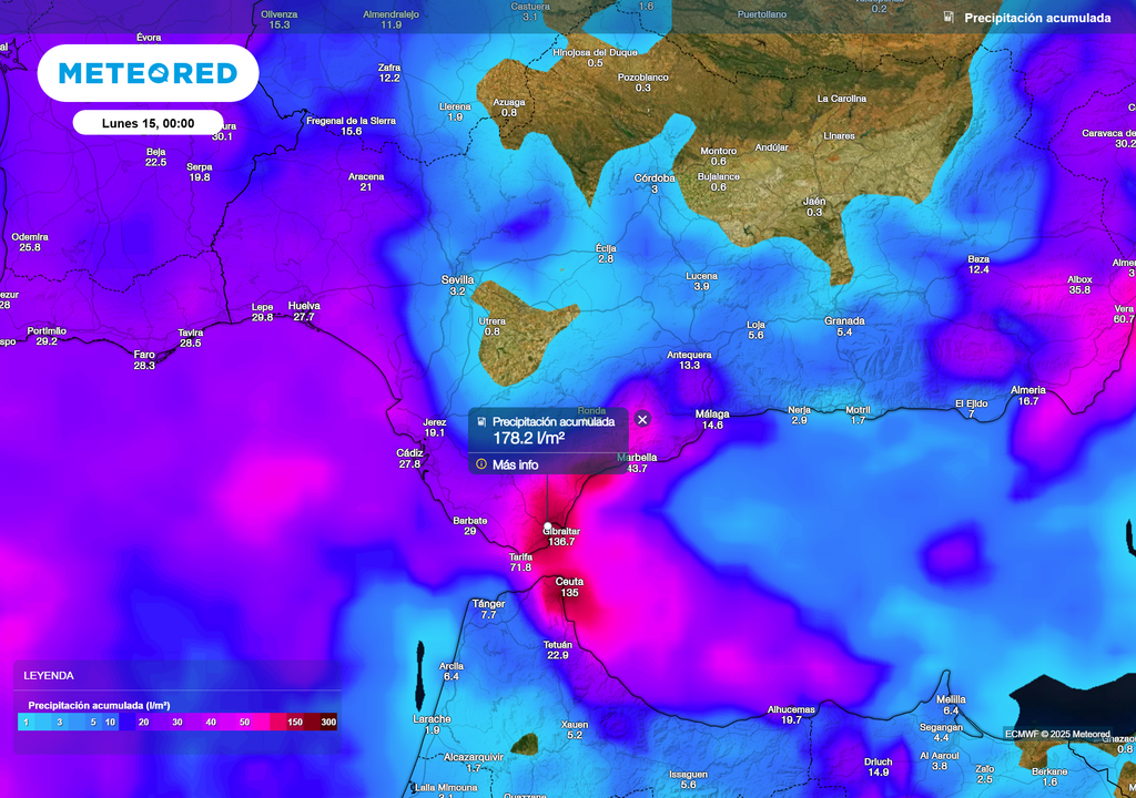 Sábado con precipitaciones fuertes y persistentes en el Estrecho