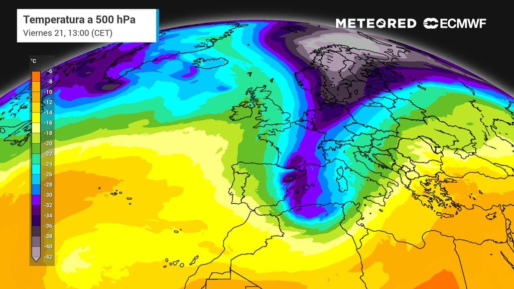 Una profunda lengua de aire frío de procedencia ártica se irá desplegando sobre la vertical de la península durante la segunda mitad de la semana.