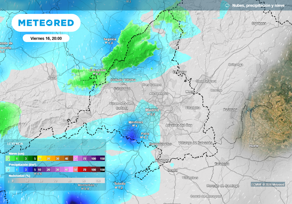 Este aire frío y húmedo irá envolviendo a España, estando también Madrid en la diana, mediante el paso de frentes, vaguadas y posibles borrascas secundarias. Su evolución será clave para definir la intensidad de las precipitaciones y la cota de nieve, con el Sistema Central actuando como una de las zonas más favorecidas para las nevadas.