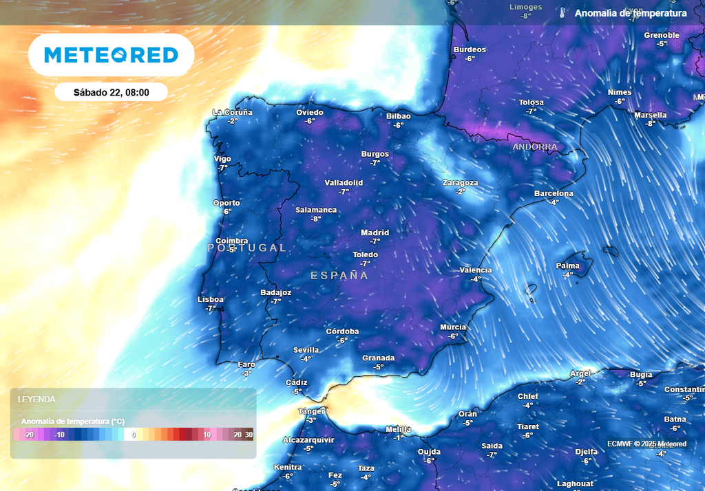 Helará en todas las capitales de provincia de Castilla y León: Ávila, Soria, Salamanca, Segovia, León, Palencia, Burgos, Valladolid y Zamora. También en las de Castilla-La Mancha (Cuenca, Ciudad Real, Guadalajara, Albacete, Toledo), así como Vitoria, Teruel y Madrid, donde se despertarán con valores negativos entre -2 y -4 ºC. Pueden bajar ligeramente de los 0 ºC en Logroño, Lugo, Ourense o Pamplona.