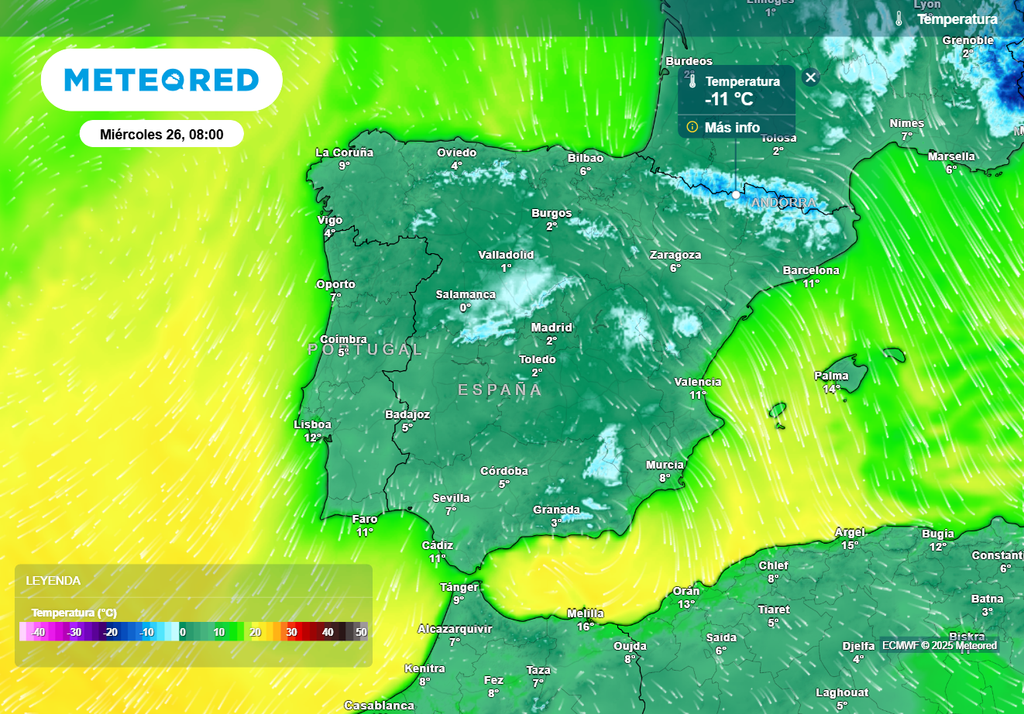Durante la próxima madrugada los cielos se despejarán y las temperaturas bajarán en la España peninsular: este miércoles varias capitales amanecerán con menos de 0 ºC.