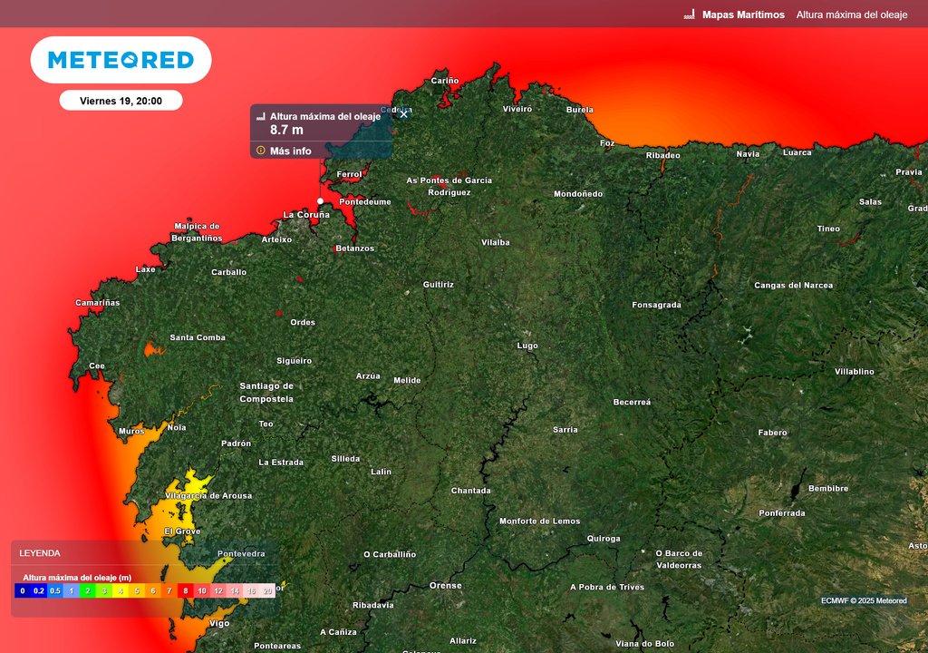 De cara al sábado, aunque perderá intensidad, los avisos continuarán activos en nivel amarillo. Este temporal marítimo afectará tanto a la costa abierta al oeste como a zonas expuestas de rías, por lo que se recomienda extremar la precaución.