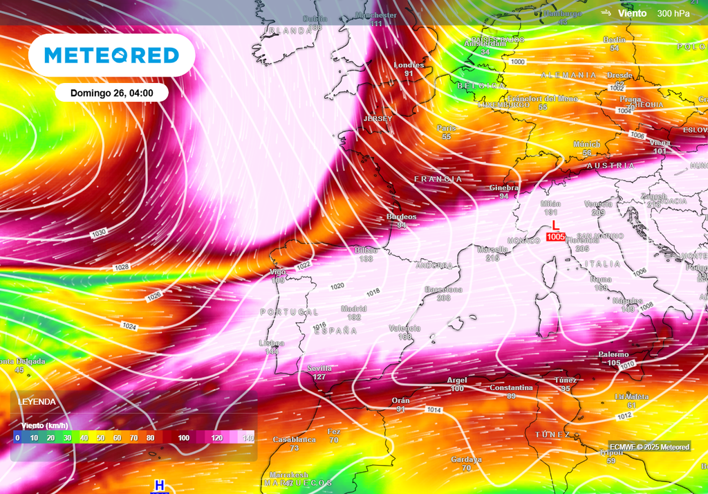 El modelo europeo apuesta por un desplazamiento rápido de la vaguada entre el sábado y el domingo, con un fuerte chorro de vientos en la zona delantera en niveles altos de la troposfera. Además, interaccionará con el río de humedad subtropical procedente del Atlántico que aún se mantendrá esta jornada. Si se mantiene esta configuración, los chubascos podrían ser fuertes o muy fuertes e ir acompañados de tormentas violentas en algunas comunidades.