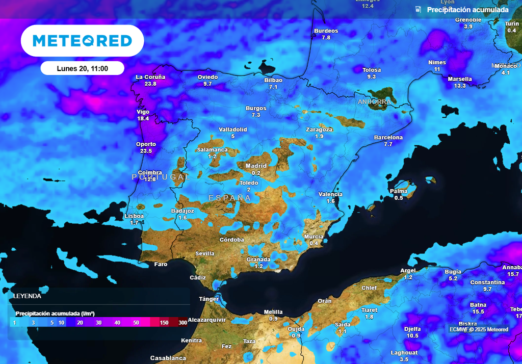 El bloqueo británico cederá y dará paso a los frentes atlánticos a partir de mañana, con lluvias que serán más intensas y cuantiosas en el oeste de Galicia.