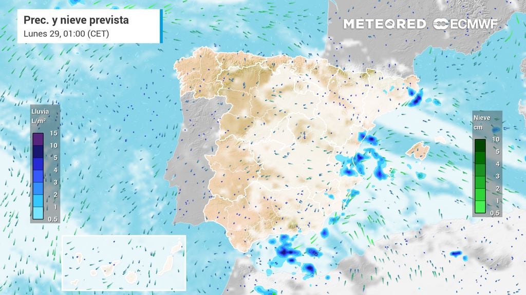 Este centro de bajas presiones posicionado sobre Baleares va a generar un entorno favorable para la convergencia de vientos en superficie, que junto al reforzado flujo húmedo marítimo, el efecto orográfico y el aire frío en altura darán lugar a un episodio de lluvias persistente y con la posibilidad de ver altos picos de intensidad en la precipitación.