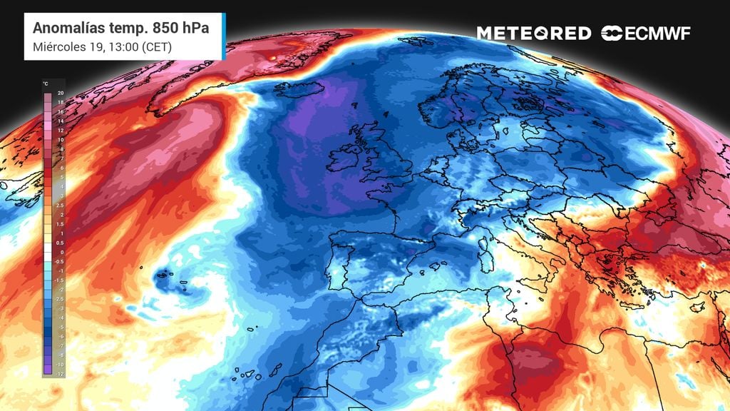 Esta semana el chorro polar estará muy ondulado en nuestras latitudes. Una dorsal anticiclónica se orientará de sur a norte en el Atlántico norte, mientras que sobre el continente europeo se descolgará una gran vaguada, y bajo la misma se desarrollarán varias borrascas. Entre las altas y las bajas presiones impulsarán un flujo de norte que traerá una masa de aire ártica marítima que afectará a buena parte de Europa desde mañana, incluyendo España.