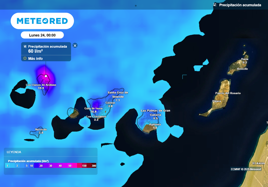 Los vecinos y turistas de esta isla de Canarias deben comenzar a mirar el cielo: más de 60 l/m2 previstos