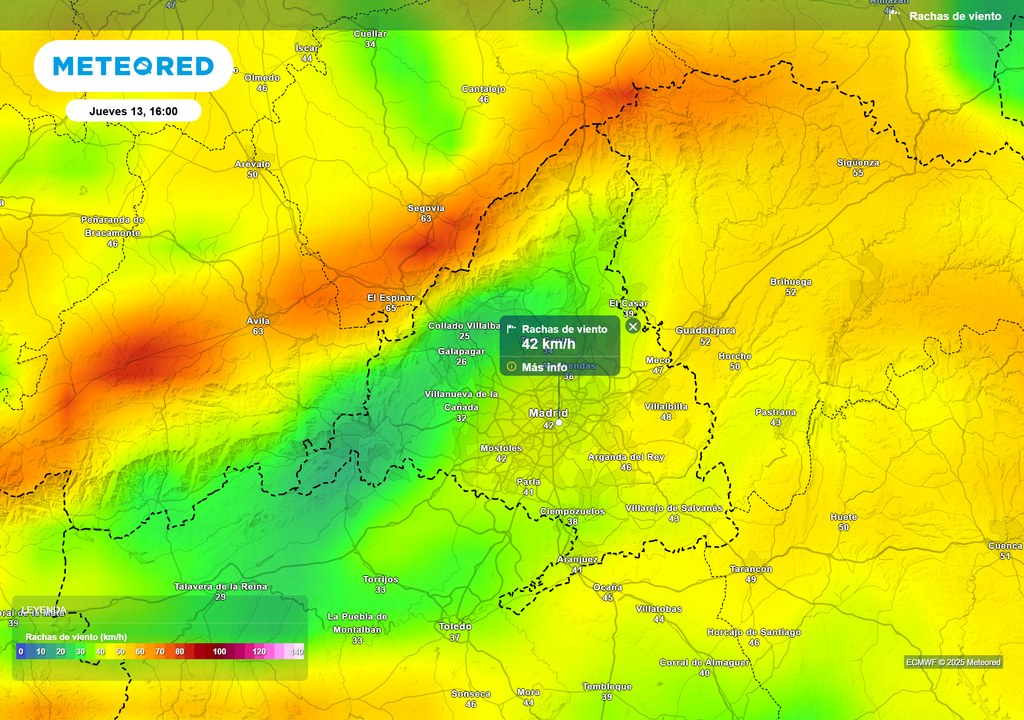 Sin embargo, las más fuertes se esperan en la Sierra, ya que habrá picos de más de 80 km/h esta tarde. Ante ello, la AEMET ha activado los avisos amarillos desde las 18 horas hasta el final del día.