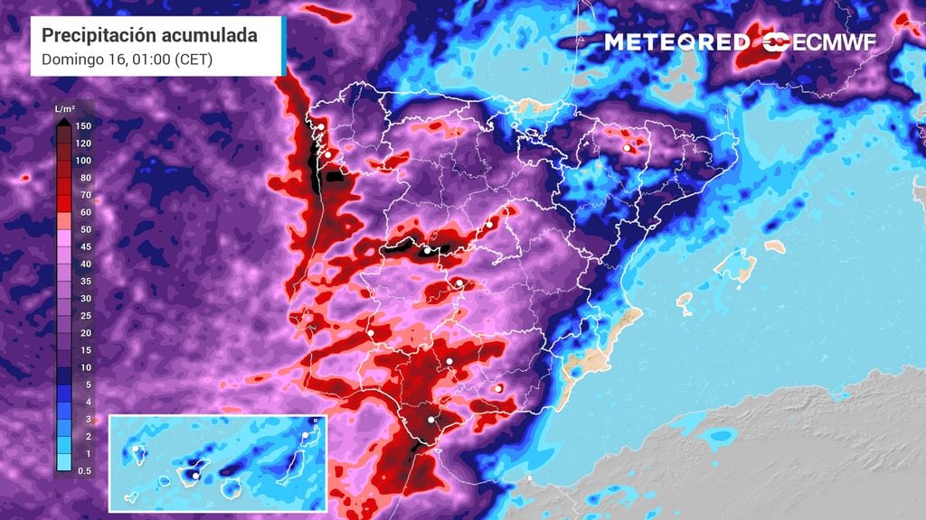 Se espera que las lluvias sean persistentes y, en algunos puntos, de carácter intenso, especialmente en ciertas provincias de la vertiente atlántica, donde podrían acumularse cantidades significativas de agua en poco tiempo. Además, el viento del sur ganará intensidad en muchas zonas de la mitad occidental, con rachas de más de 70-80 km/h.